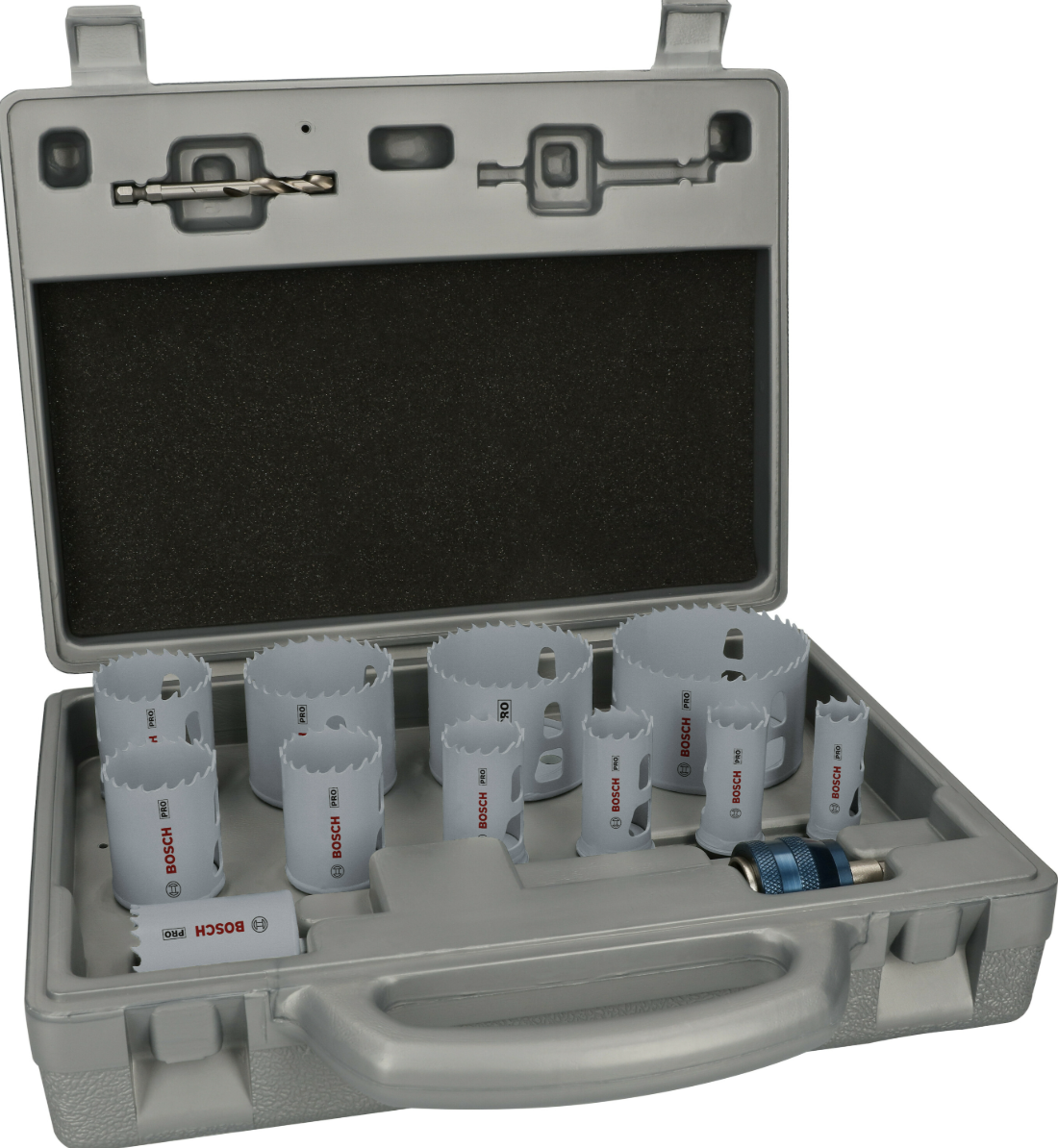 Bosch 2608594434 14pc PRO Multi Material Holesaw Set Includes 19/22/25/29/35/38/44/51/57/64 & 76mm1x Power Change Adaptor 2 x HSS-G Pilot Drills In Carry Case