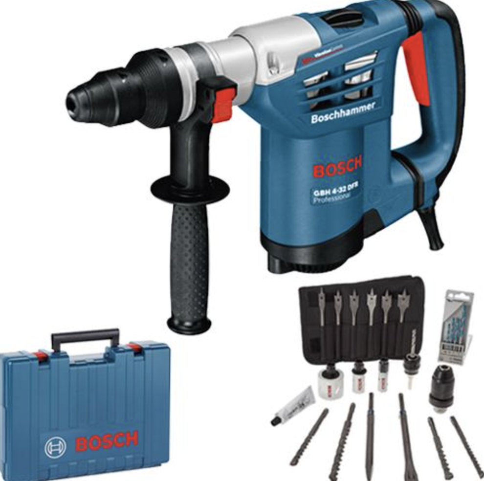 Bosch GBH 4-32DFR 220v 900w 32mm Multi Drill SDS Plus 3 Mode 800rpm 3600bpm 4.2 Joules 4.7kg With 20pc Accessories In Case 0611332171