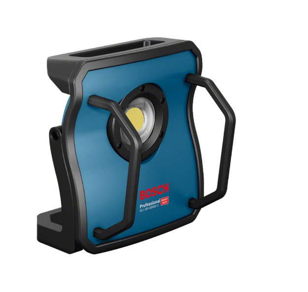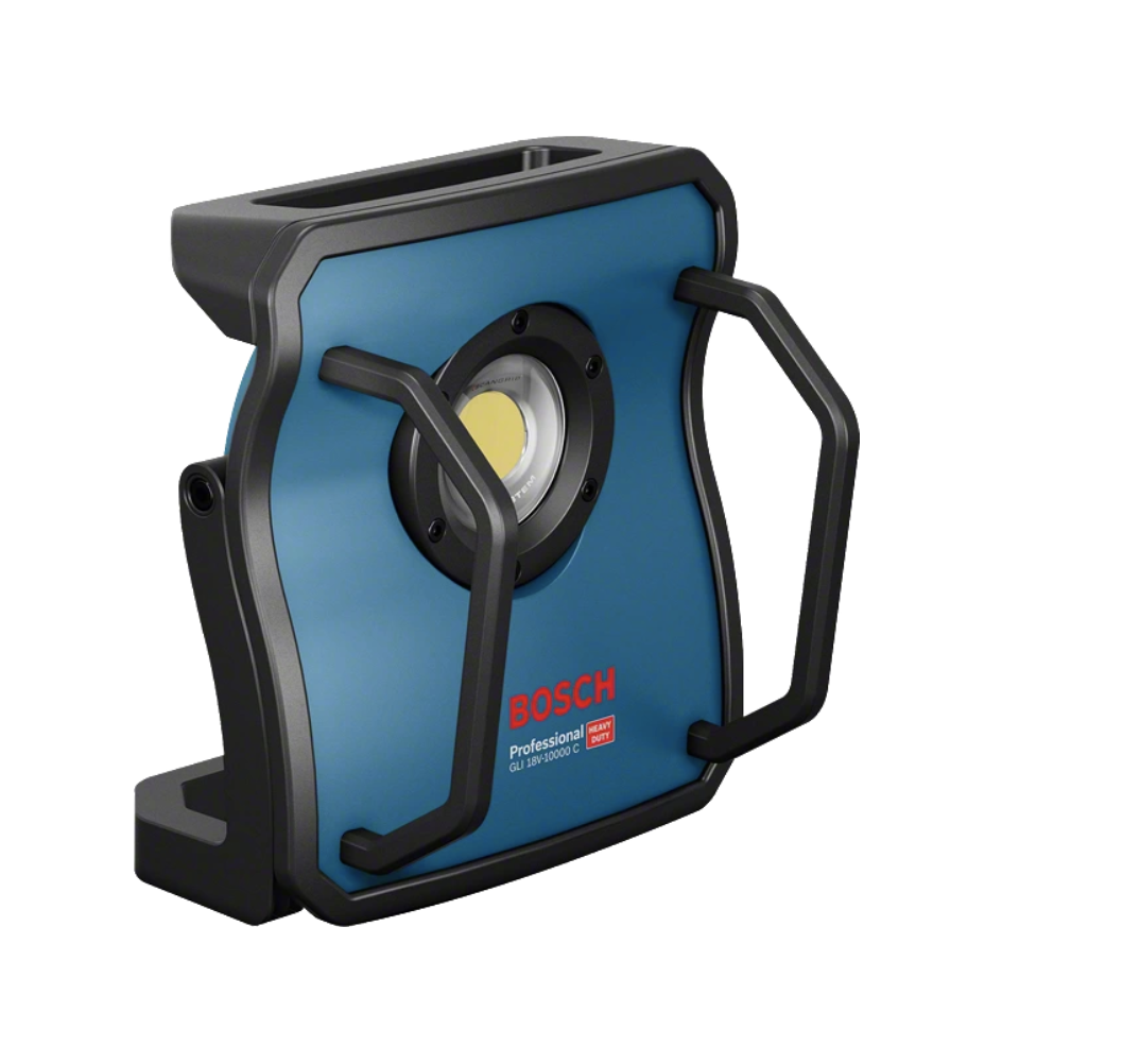The GLI 18V-10000 C Professional is Bosch's first floodlight of its kind in the 18 V category. Its superior LED is capable of producing up to an impressive 10,000 lumens of superior brightness – even brighter than 500 W halogen floodlights. The floodlight is extremely robust due to its solid metal body that is shielded with a shock-absorbing rubber frame and heavy-duty safety bars. It features a User Interface with brightness indication and charge level indicator as well as a Bluetooth connectivity module that offers convenient remote control and lighting adjustments via the MyTools tile in the Toolbox app. It has three brightness settings, flexible adjustment angles, and a 5/8" tripod thread, allowing for quick adaptation to any work situation. This floodlight is excellent for lighting up entire working areas. It is compatible with all Bosch Professional 18 V batteries and chargers (Professional 18V System).