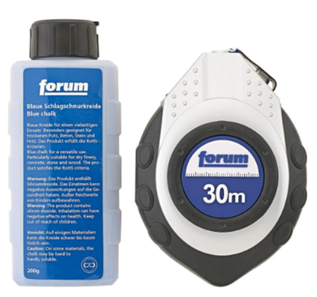 FORUM CHALK LINE MACHINE 30M & 200G BOTTLE OF CHALK CORD BLUE