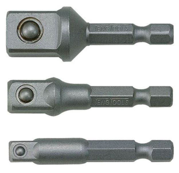 Adaptor from a 1/4" hex drive to a square socket driveSuitable for use with electric and rechargeable screwdriversFor use with standard and impact type socketsBall detent on the male end to securely grip the socket