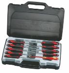 10 piece screwdriver set for slotted, Phillips and Pozi drive heads. The screwdrivers feature TT-MV PLUS steel blades and ergonomically designed bi-material handles with hanging hole and T drive facility for added torque and comfort.